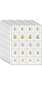 11 Sheets Coin Pocket Pages for Coin Flips